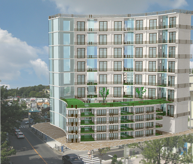 横田氏: 今回の作品は、2年生の時に設計し、村瀬先生の授業でCG化したものを、アワード用に修正したものです。背景画像の写真は、授業で提出した時は、現地が工事中でクレーン車があったり、曇っていたりでしたが、授業で提出しなければならないのでしょうがないや、みたいな感じで撮影したので、今回、写真を撮り直せてよかったです。
