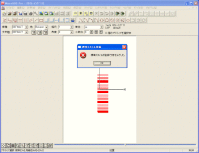 - 「標準スタイルが登録できませんでした」というメッセージが表示され、図面の中央付近に長方形がいくつか残る。