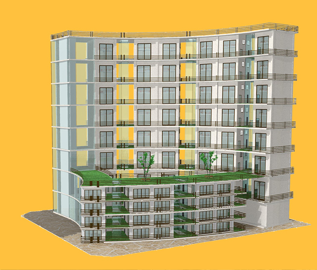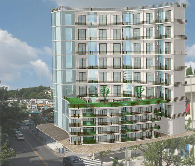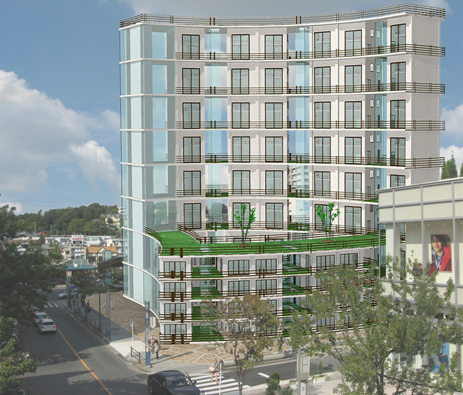 横田氏: 今回の作品は、2年生の時に設計し、村瀬先生の授業でCG化したものを、アワード用に修正したものです。背景画像の写真は、授業で提出した時は、現地が工事中でクレーン車があったり、曇っていたりでしたが、授業で提出しなければならないのでしょうがないや、みたいな感じで撮影したので、今回、写真を撮り直せてよかったです。
