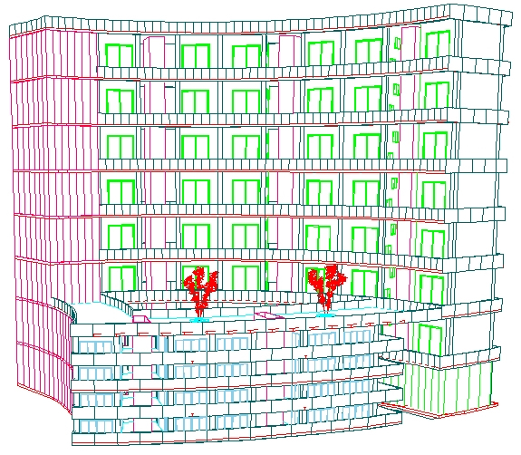 2年生の前期は、その続きとして若干難しい内容をやります。春休みをはさむと学生さんも全部忘れますので、また最初から解説していくことになりますが、2年生の前半を過ぎますと、だいぶ図面を読めるようになっていきます。4つほど図面をそろえておいて、そのうち好きな図面を選んでトレースしてもらいます。平面図、立面図、断面図をそれぞれ描いてもらい、まずは2次元の図面を描けるように、ということで授業を進めていきます。 次に有名建築家さんの図面を3Dモデリングします。これも授業は2回あるかないかくらいで、他のレポート等々で追われている中、一生懸命作ってもらっています。外観、内観とパースを作成した後で、それを1枚のプレゼンボードにして、図面、文字、各パースを入れて提出してもらいます。 ここまでを2年前期までにやってしまうと、建築の製図の授業でCADを使ったり、コンペ等も積極的に出す学生さんがたくさん出てくるようになってきます。基本を身につけてしまえば、あとは自分たちで覚えていく、こういう風にやりたい、ああいう風にやりたい、となればしめたものです。