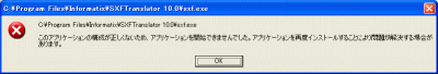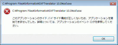 ご利用のPCが、Microsoft Windows Updateなどで自動更新されていない場合、 「SXFトランスレータ 10.0対応版」をダブルクリックしたとき、次のようなエラーメッセージが表示されることがあります。 これは、SXFトランスレータ更新版の動作には、Microsoftのセキュリティアップデートされたランタイムライブラリが必要なためです。 ・Windows XP ![]() ・Windows Vista 上記のエラーが発生した場合は、以下の手順でMicrosoftのセキュリティアップデート実施済みのランタイムライブラリをインストールしてください。