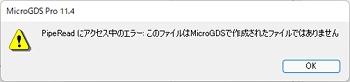 「PipeReadにアクセス中のエラー:このファイルはMicroGDSで作成されたファイルではありません」