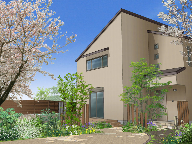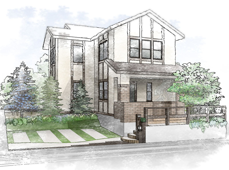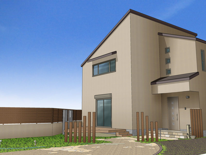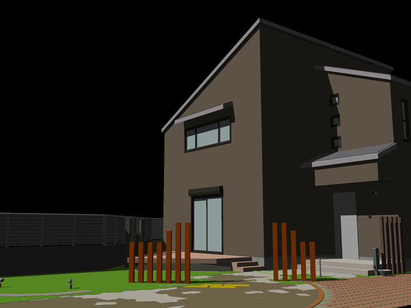 「Piranesiで作成したパースは、クライアント様からの反応が非常によく、成約率が高いとうれしいお言葉をいただいております」という飛田氏。ボリュームのないエクステリアや建物の色が決まっていない段階での提案の場合、フォトリアルでレンダリングすると寂しくなりがちだが、ピラネージで建物を白く塗り、黒エッジだけで表現し、メインの商材をカラーでふんわり仕上げるだけでも、雰囲気が良くなるという。