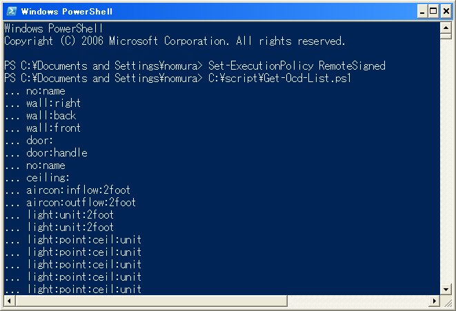 | Windows PowerShellによる 「オブジェクト名の一覧表示」サンプル実行イメージ |