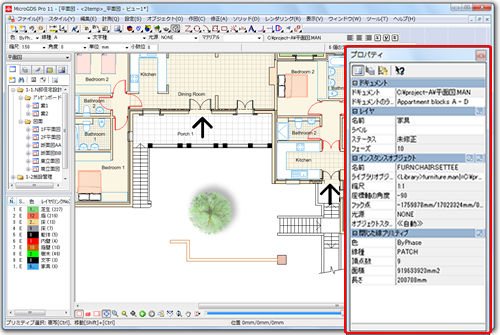 図形の縮尺や線・文字スタイルなどのプロパティを確認、編集できます。 また、図形に付帯させる属性情報を簡単に設定、編集できます。 編集操作については、オブジェクトを複数選択して、共通属性を一括編集することも可能です。