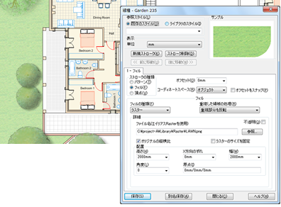 平面図、立面図などの2次元図面を着色し、美しくわかりやすい図面を作成することができます。