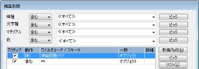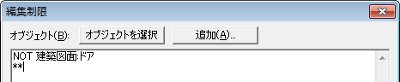 上記のように指定すると、「建築図面:ドア」以外のすべてのオブジェクトが編集対象となります。