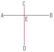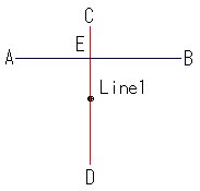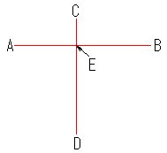以下のような図で、「AB」と「CD」の線分が交差している場合に、交点「E」で「AE」と「EB」という線分に 切断したい場合、メニュー「修正/切断」で、「E」をスナップすると、線の作図順によって切断できない場合があります。