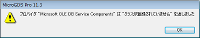 旧バージョンおよび32bit版MicroGDS V11.xで作成したマルチユーザプロジェクトのデータベース(.cpd)は、Microsoft Jet4.0データベースで作成されています。
