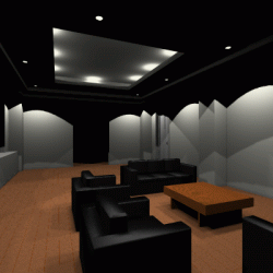 これは、グローバルイルミネーション用のモデルを、従来のレイトレーシングのみでレンダリングした結果です。