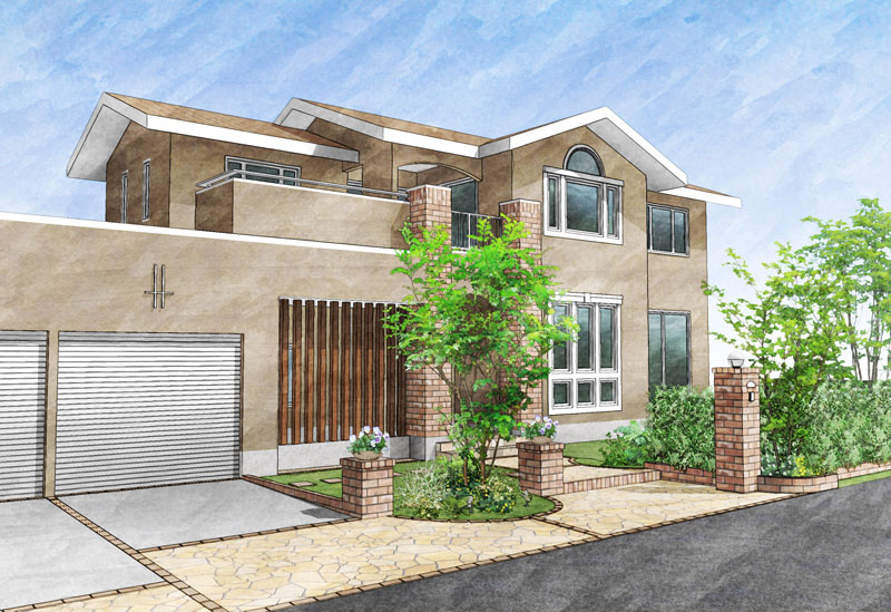 「Piranesiで作成したパースは、クライアント様からの反応が非常によく、成約率が高いとうれしいお言葉をいただいております」という飛田氏。ボリュームのないエクステリアや建物の色が決まっていない段階での提案の場合、フォトリアルでレンダリングすると寂しくなりがちだが、ピラネージで建物を白く塗り、黒エッジだけで表現し、メインの商材をカラーでふんわり仕上げるだけでも、雰囲気が良くなるという。